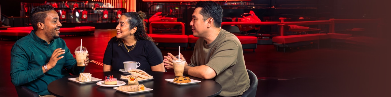تم افتتاح إي سبورتز كافيه في عالم فيراري جزيرة ياس. كافيه صمّم لتعزيز تجربة التشويق التي تعيشونها في 'إي سبورتز أرينا'، حيث يمتاز بأجواء نابضة بالحيوية تجعله الوجهة الأمثل لليافعين وعشاق الألعاب الإلكترونية ومحترفي الرياضات الإلكترونية.